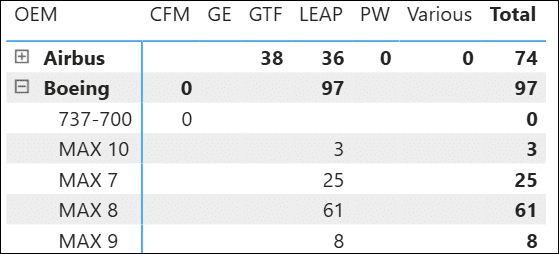 Boeing single aisle inventory