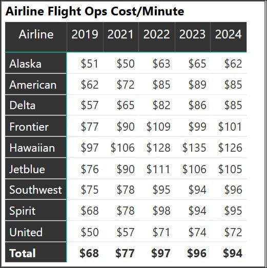 airline costpermin