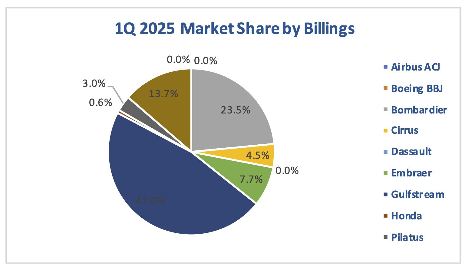 1Q 2025 Business Jet Billings Market Share Pie