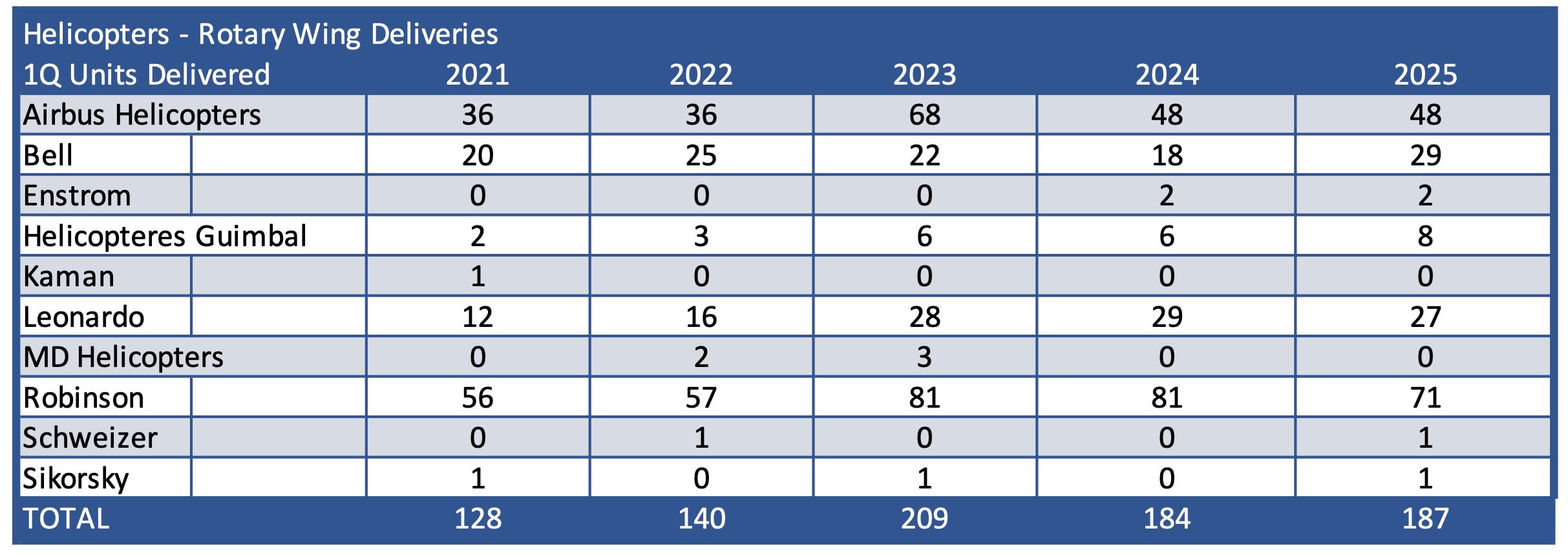 1Q 2025 Helicopter shipments by OEM source: GAMA 1Q 2025 Helicopter Shipments by OEM Views: 0 Ernest Arvai President AirInsight Group LLC See Full Bio Post navigation Previous Previous post: GAMA 1st Quarter 2025 Shipments and Billings Leave a ReplyYour email address will not be published. Required fields are marked *Comment * Name Email Website Δ This site uses Akismet to reduce spam. Learn how your comment data is processed.