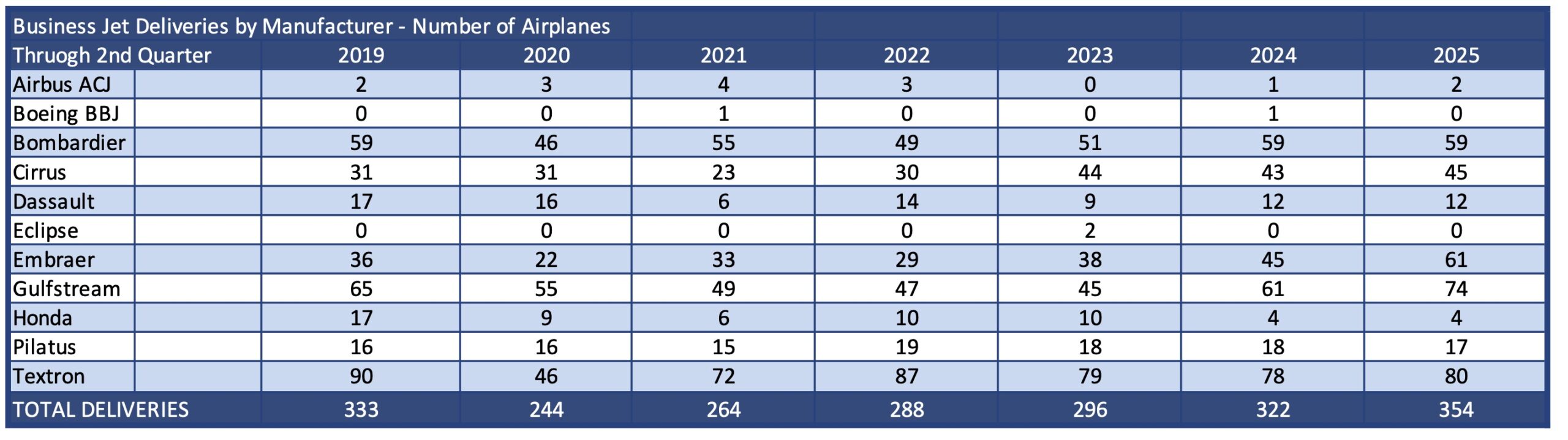 Deliveries by Manufacturer 1H 2019 1H 2025