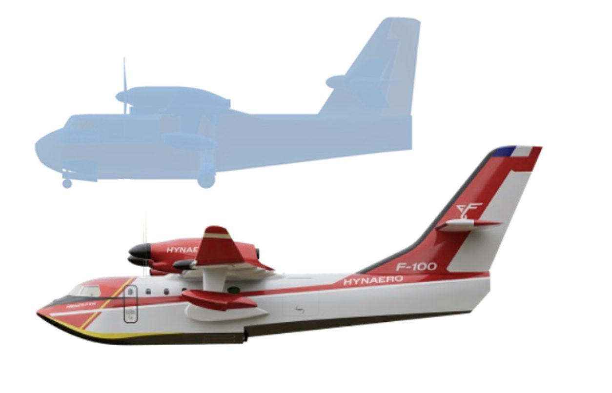 Hynaero Fregate F 100 and Canadair CL 415 aerial firefighting aircraft size comparison