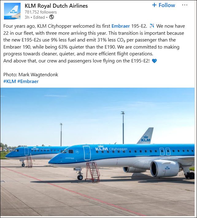 KLM linkedin post