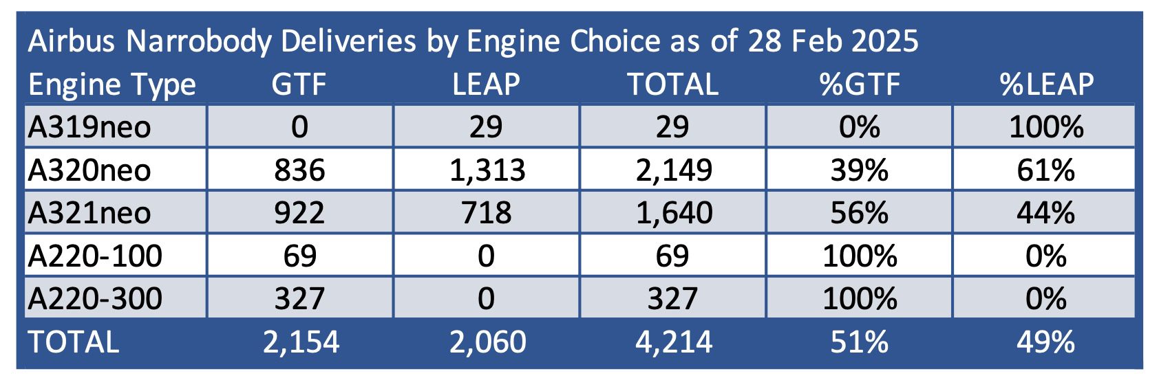 Airbus Deliveries by Engine Type for current models