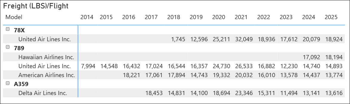 t 100 freight per flight